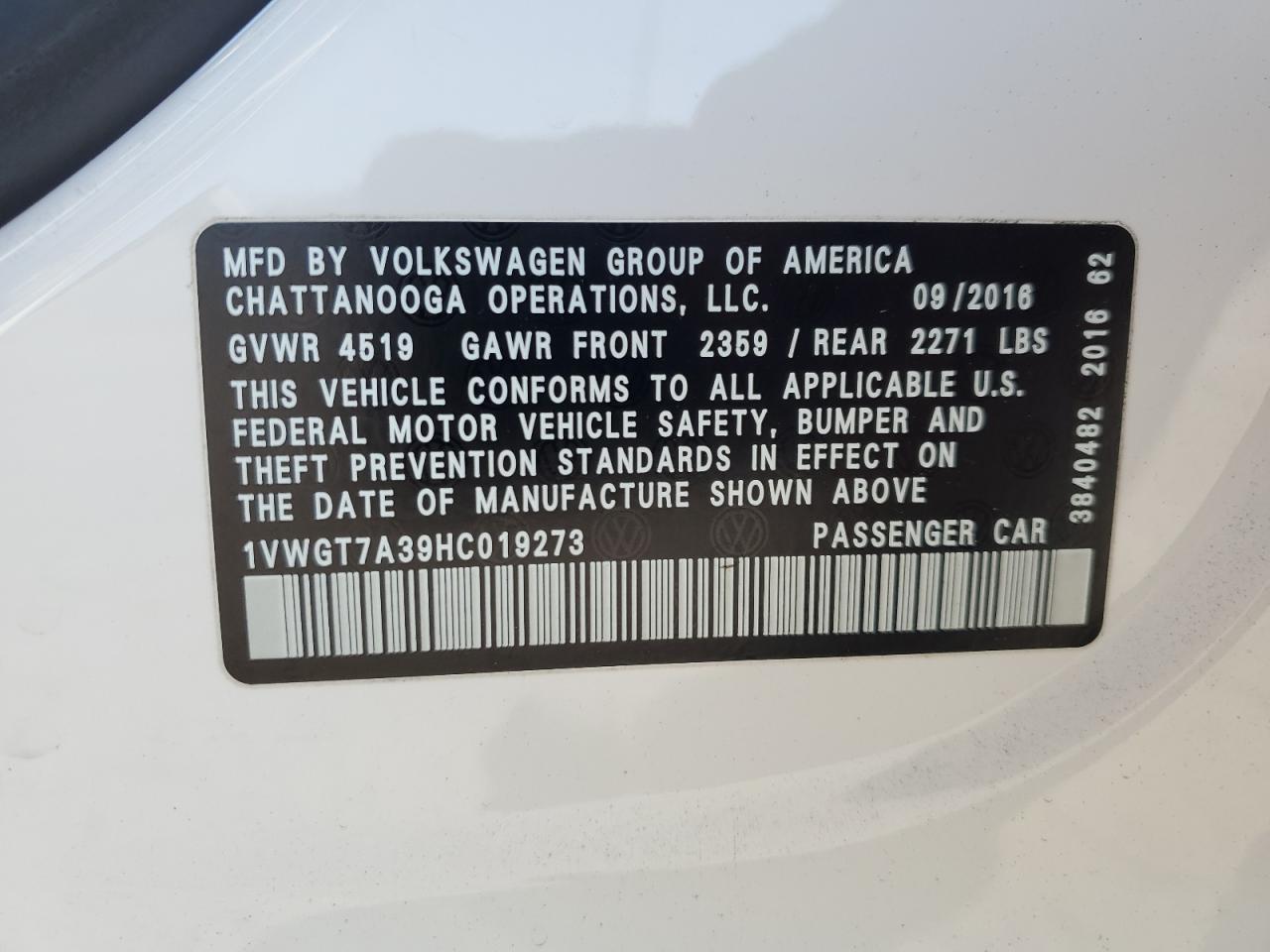 VOLKSWAGEN PASSAT 1.8 2017 г.в., (1VWGT7A39HC019273) из США