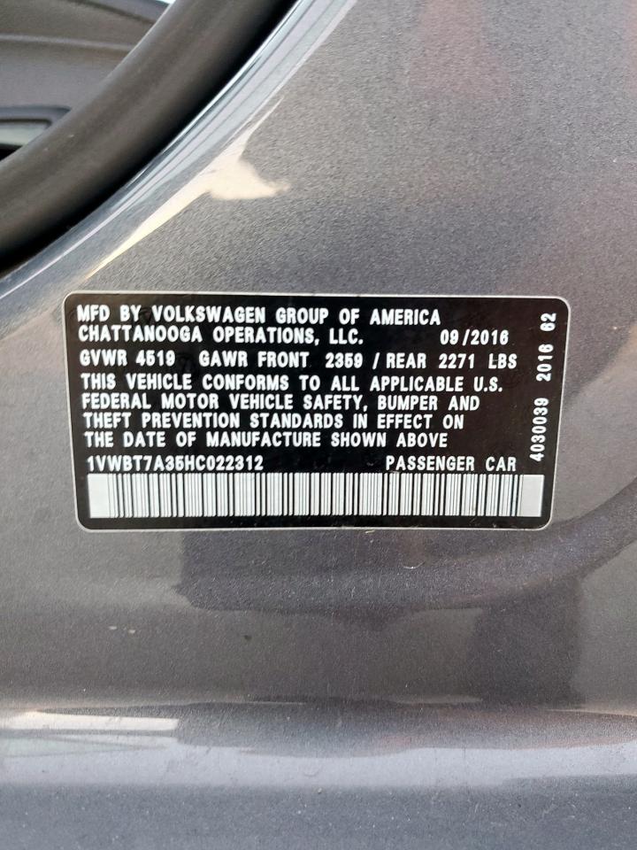 VOLKSWAGEN PASSAT 1.8 2017 г.в., (1VWBT7A35HC022312) из США