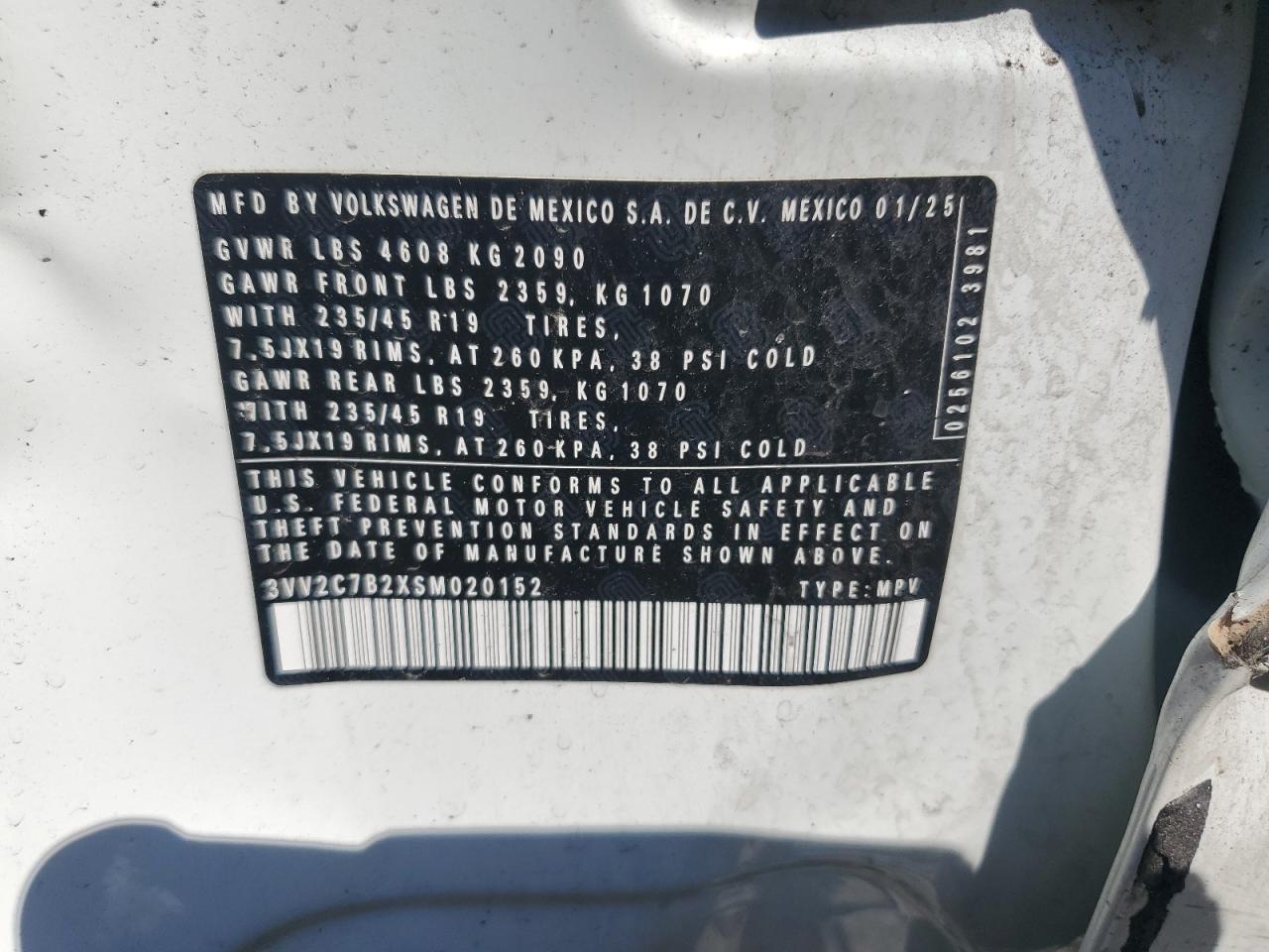 VOLKSWAGEN TAOS 1.5 2025 г.в., Полный привод (3VV2C7B2XSM020152) из США