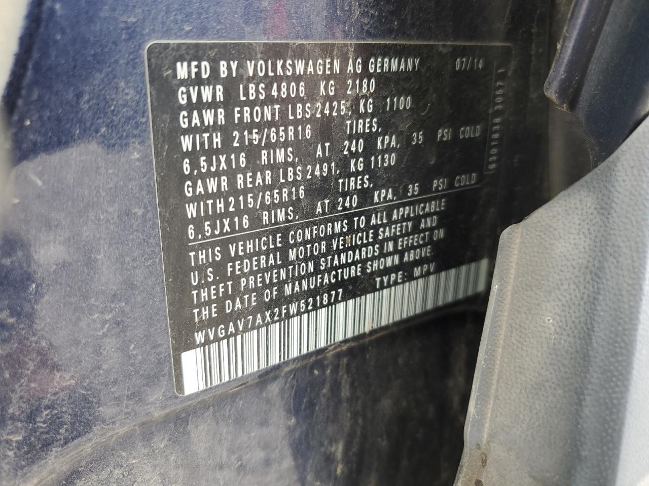 VOLKSWAGEN TIGUAN 2.0 2015 г.в., (WVGAV7AX2FW521877) из США