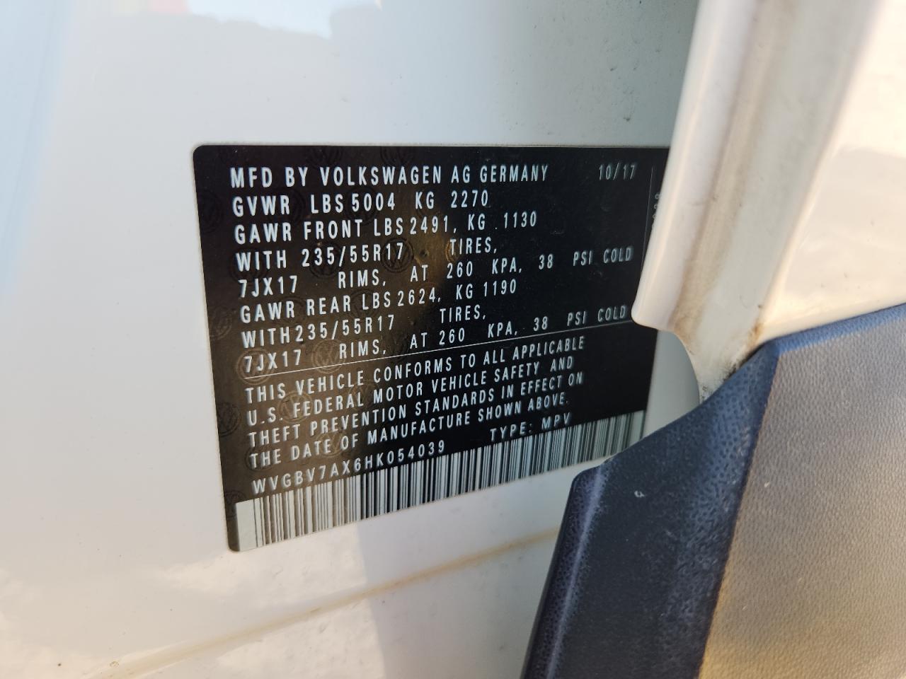 VOLKSWAGEN TIGUAN 2.0 2017 г.в., Полный привод (WVGBV7AX6HK054039) из США