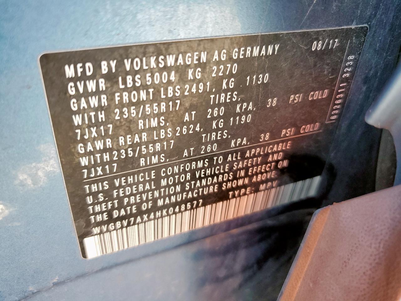 VOLKSWAGEN TIGUAN 2.0 2017 г.в., Полный привод (WVGBV7AX4HK048577) из США