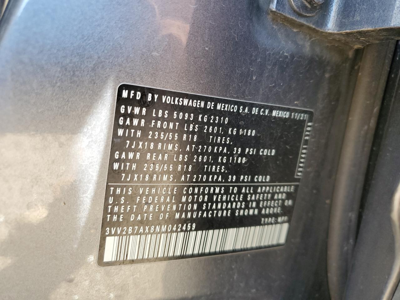 VOLKSWAGEN TIGUAN 2.0 2022 г.в., Полный привод (3VV2B7AX8NM042459) из США