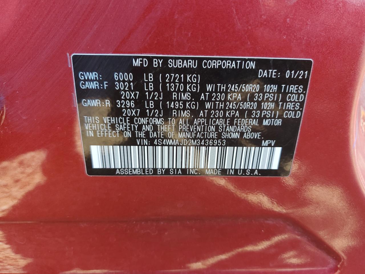 SUBARU ASCENT 2.4 2021 р.в., Повний привід (4S4WMAJD2M3436953) з США