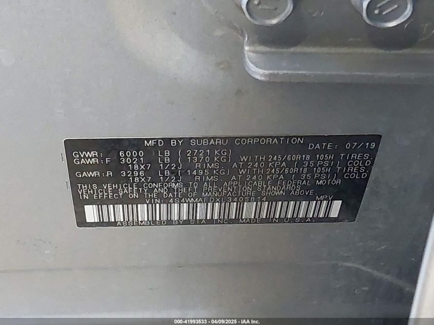 SUBARU ASCENT 2.4 2020 р.в., Повний привід (4S4WMAFDXL3405814) з США