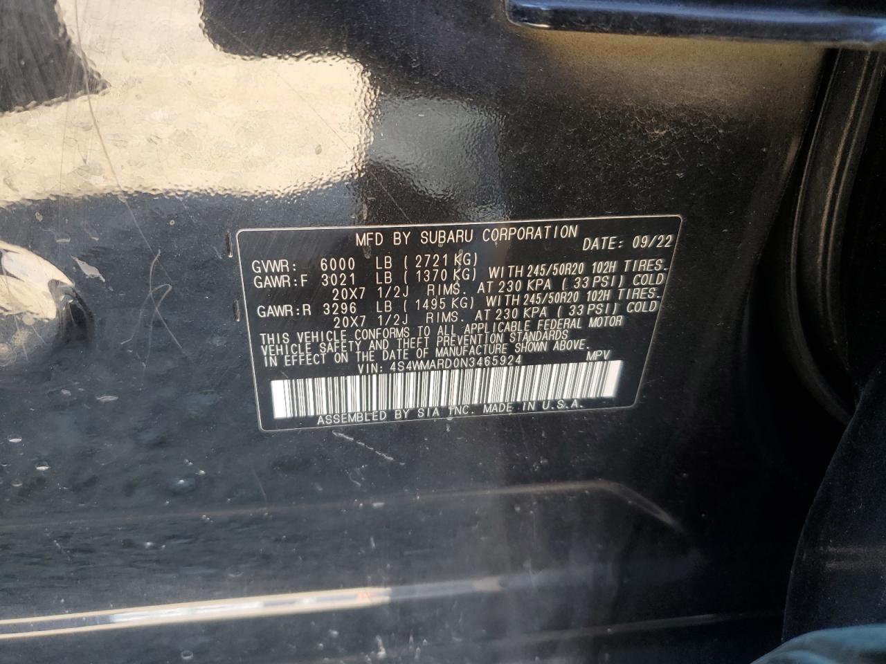 SUBARU ASCENT 2.4 2022 р.в., Повний привід (4S4WMARD0N3465924) з США