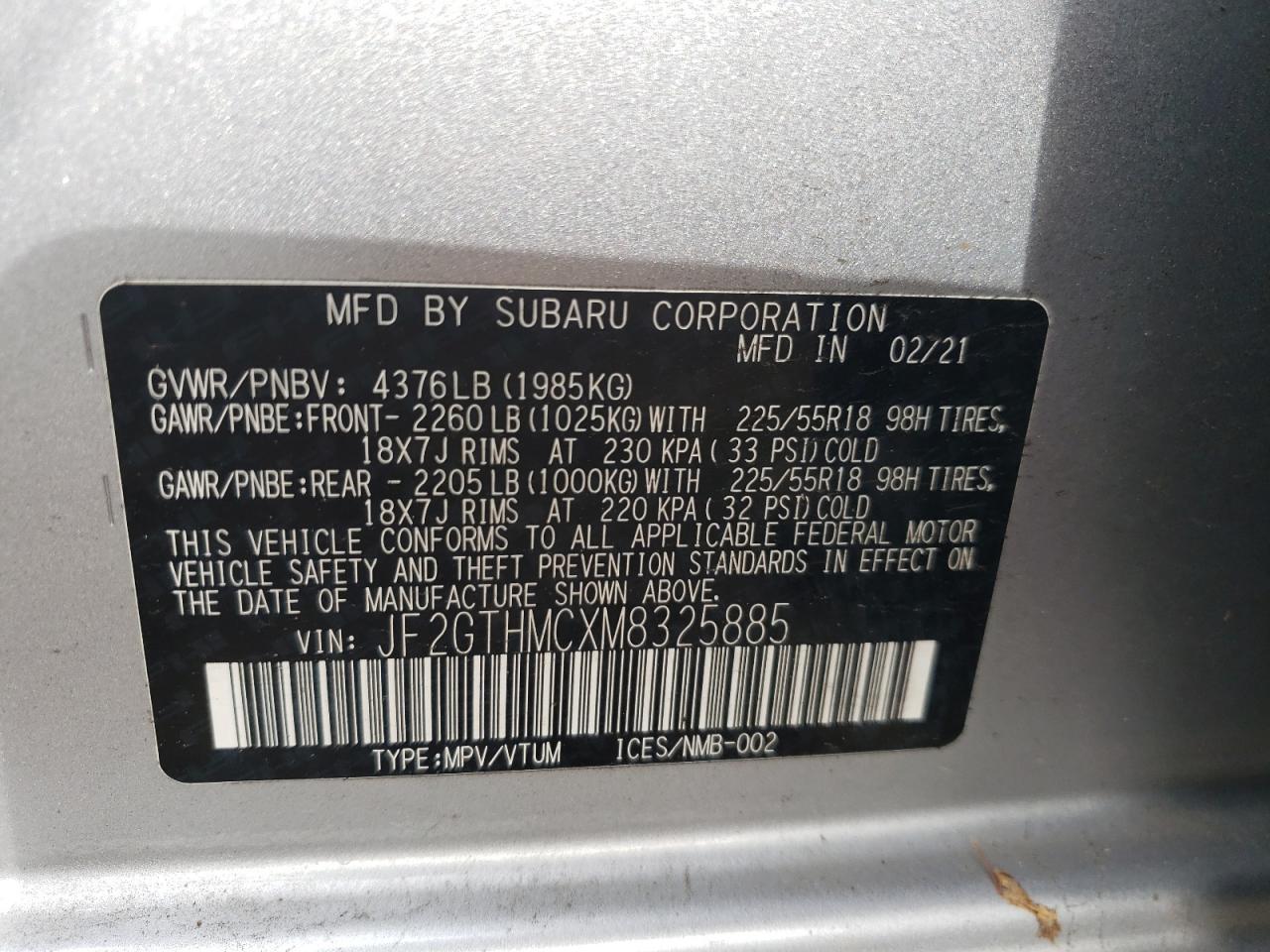 SUBARU CROSSTREK 2.5 2021 р.в., Повний привід (JF2GTHMCXM8325885) з США