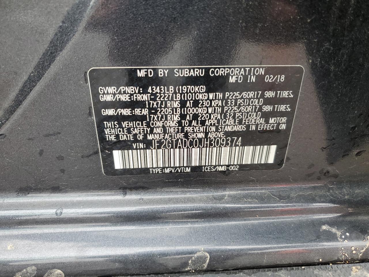 SUBARU CROSSTREK 2.0 2018 р.в., Повний привід (JF2GTADC0JH309374) з США