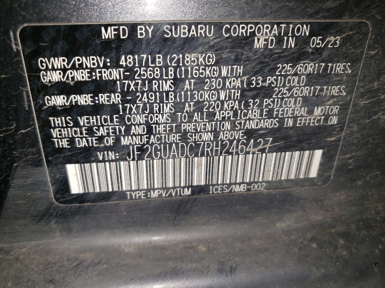 SUBARU CROSSTREK 2.0 2024 р.в., Повний привід (JF2GUADC7RH246427) з США