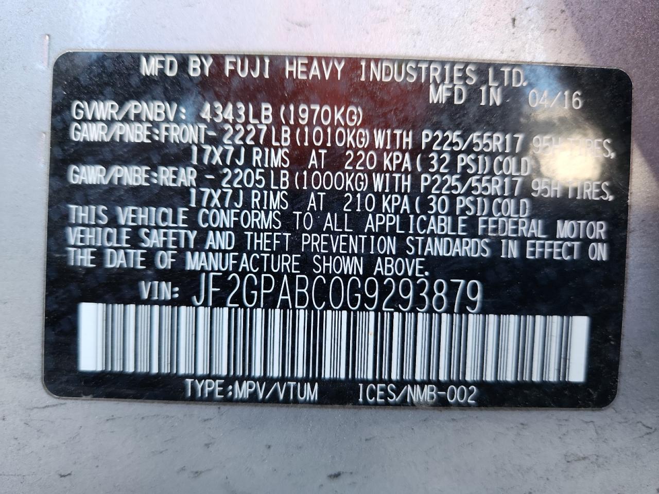 SUBARU CROSSTREK 2.0 2016 р.в., Повний привід (JF2GPABC0G9293879) з США