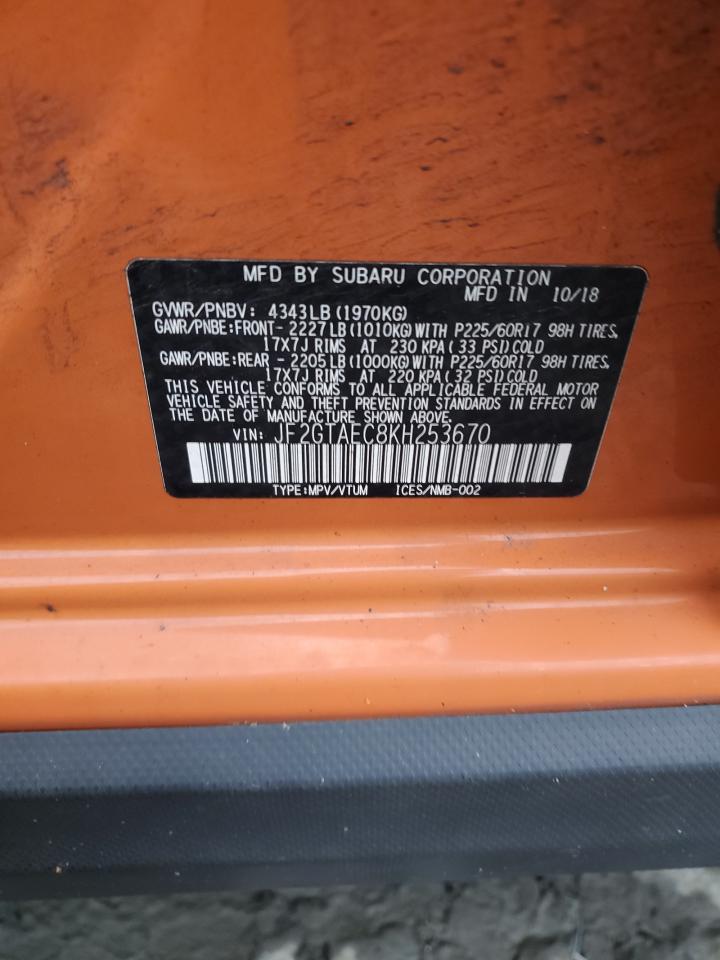SUBARU CROSSTREK 2.0 2019 р.в., Повний привід (JF2GTAEC8KH253670) з США