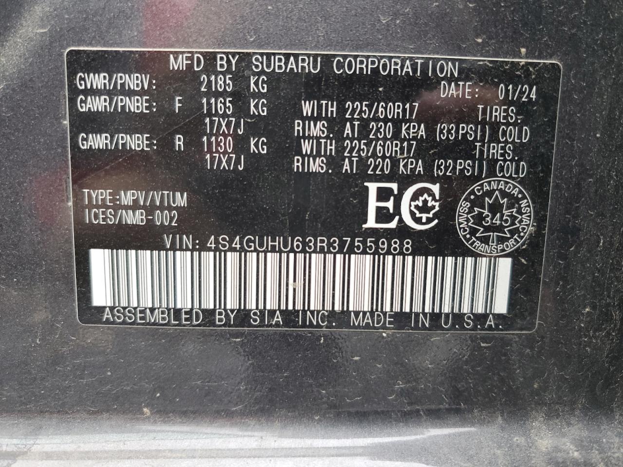 SUBARU CROSSTREK 2.5 2024 р.в., Повний привід (4S4GUHU63R3755988) з США