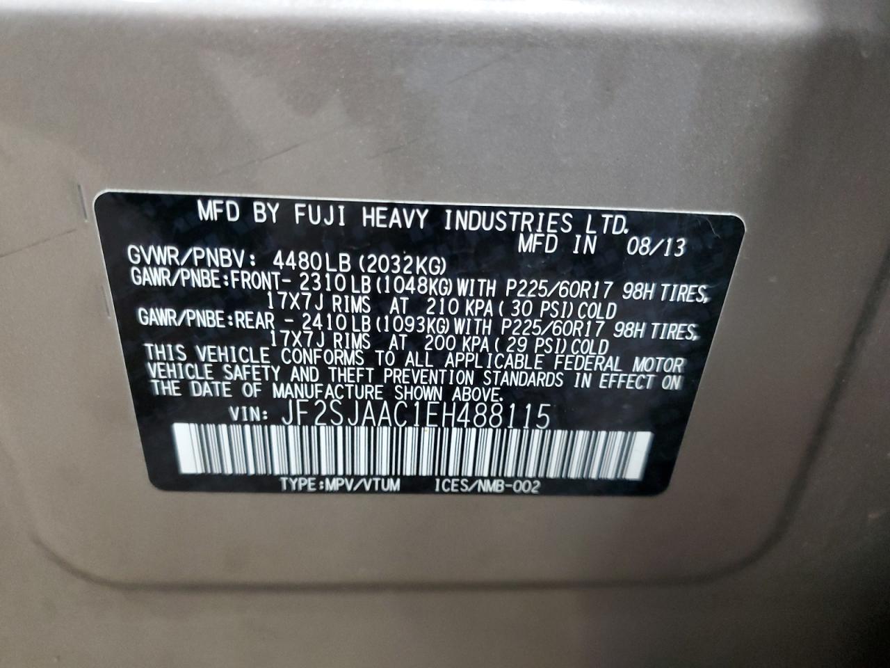 Колір ЗагарЦиліндри 4Привід Повний привідVIN JF2SJAAC1EH488115Стан Заводиться та їде (перевірено)Ушкодження Передня або задня