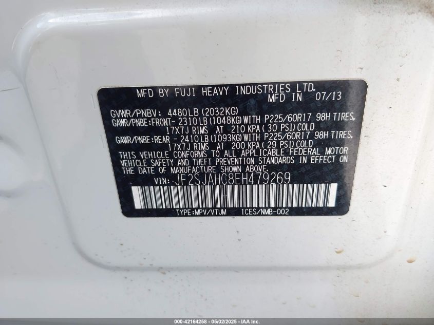 SUBARU FORESTER 2.5 2014 р.в., Повний привід (JF2SJAHC8EH479269) з США