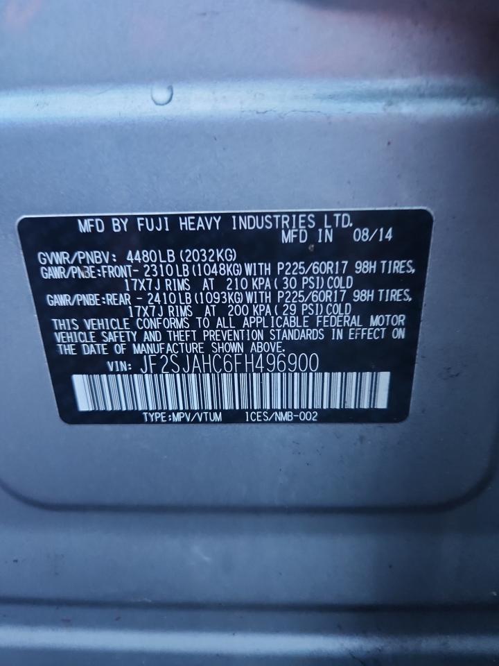 Колір СрібнийЦиліндри 4Привід Повний привідVIN JF2SJAHC6FH496900Стан Заводиться та їде (перевірено)Ушкодження Передня або задня