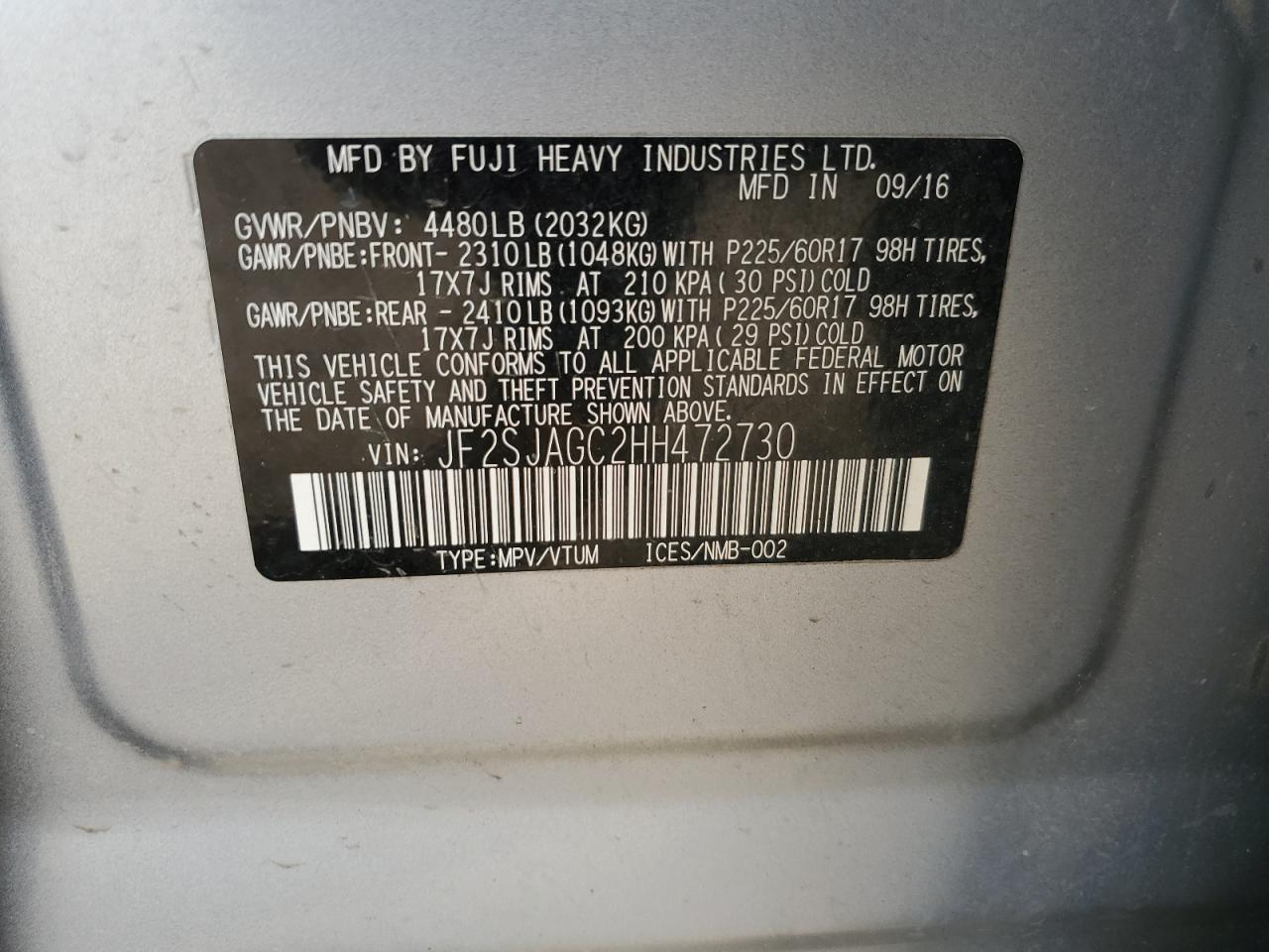 SUBARU FORESTER 2.5 2017 р.в., Повний привід (JF2SJAGC2HH472730) з США