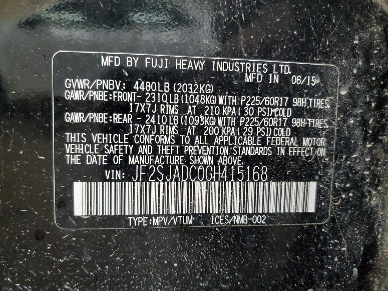 Колір ЧорнийЦиліндри 4Привід Повний привідVIN JF2SJADC0GH415168Стан Заводиться та їде (перевірено)Ушкодження Передня або задняДата аукціону 2025-11-05