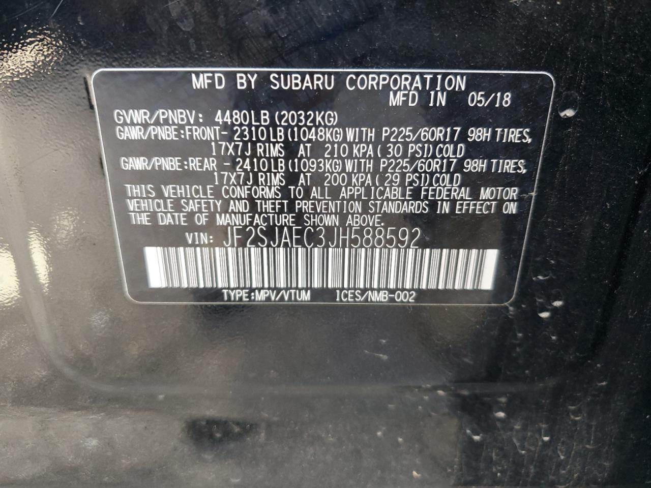 Колір ЧорнийЦиліндри 4Привід Повний привідVIN JF2SJAEC3JH588592Стан Заводиться та їде (перевірено)Ушкодження ЗадняДата аукціону 2025-11-03