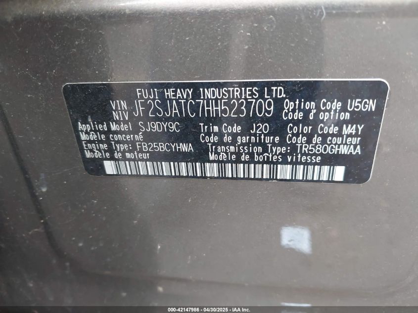 SUBARU FORESTER 2.5 2017 р.в., Повний привід (JF2SJATC7HH523709) з США