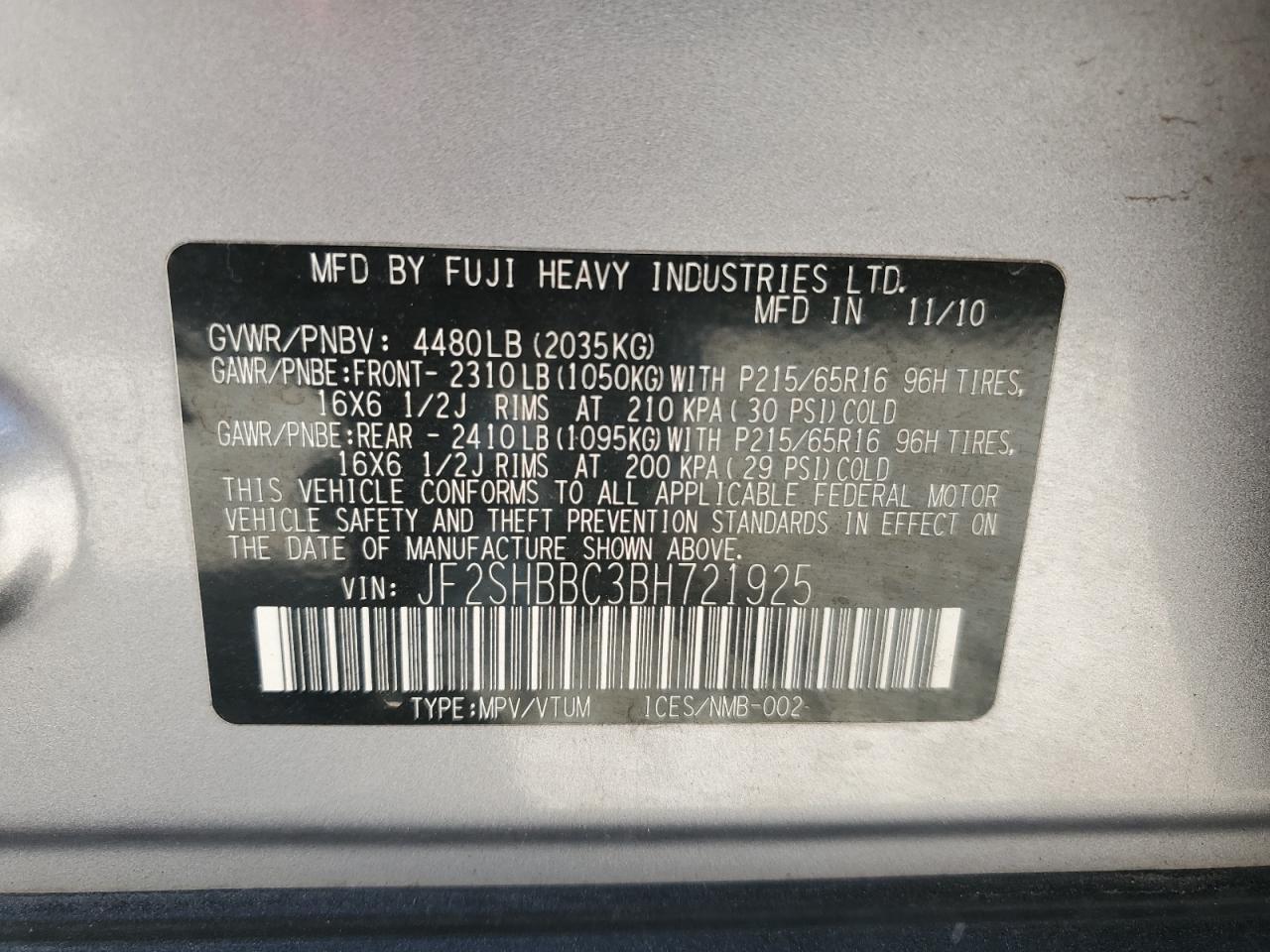 SUBARU FORESTER 2.5 2011 р.в., Повний привід (JF2SHBBC3BH721925) з США