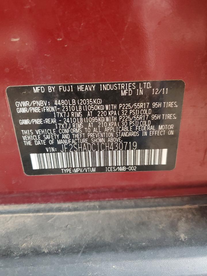 Колір БургундіяЦиліндри 4Привід Повний привідVIN JF2SHADC1CH430719Стан ЗаводитьсяУшкодження Механічні пошкодження