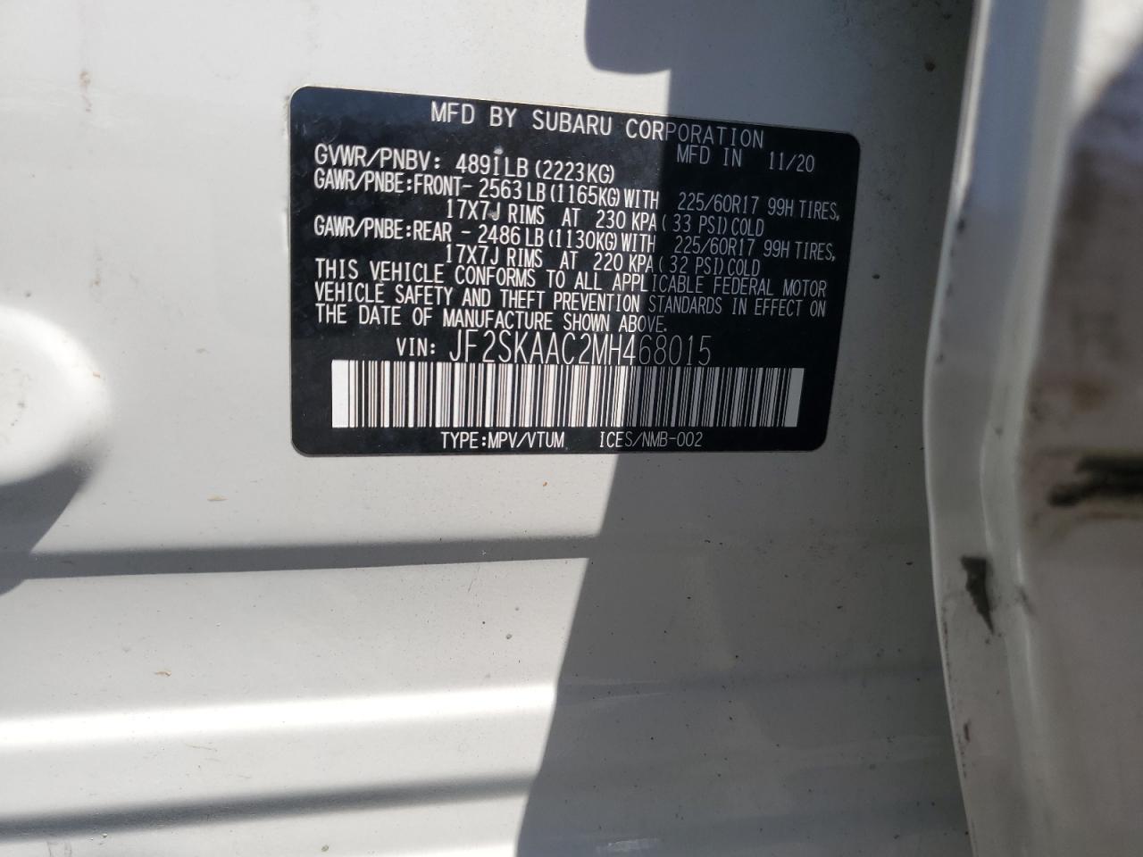 Колір БілийЦиліндри 4Привід Повний привідVIN JF2SKAAC2MH468015Стан Заводиться та їде (перевірено)Ушкодження Перекидання