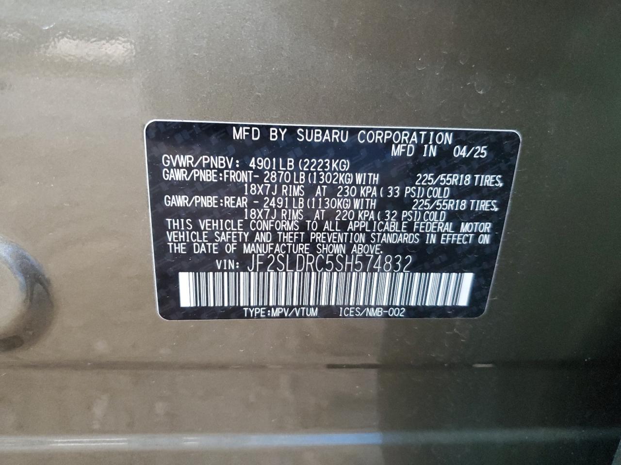 SUBARU FORESTER 2.5 2025 р.в., Повний привід (JF2SLDRC5SH574832) з США