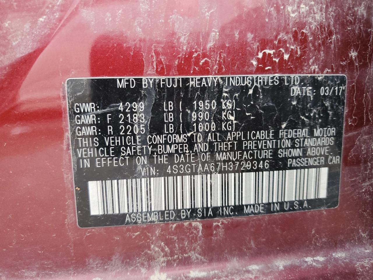SUBARU IMPREZA 2.0 2017 р.в., Повний привід (4S3GTAA67H3729346) з США