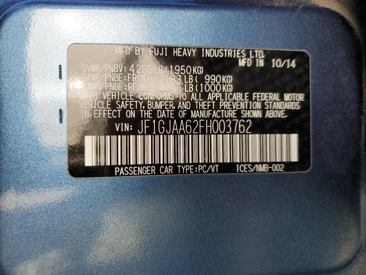 SUBARU IMPREZA 2.0 2015 р.в., Повний привід (JF1GJAA62FH003762) з США