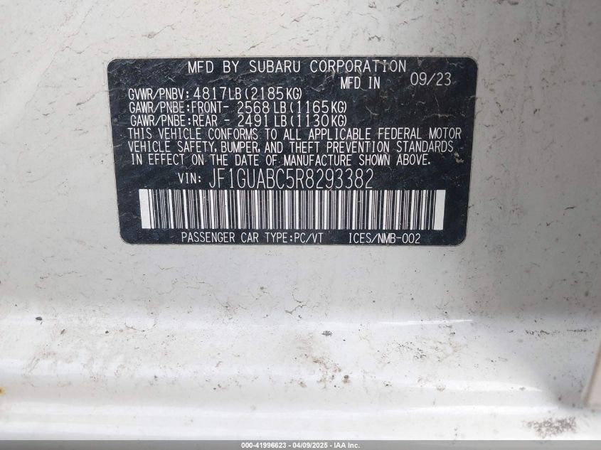 SUBARU IMPREZA 2.0 2024 р.в., Повний привід (JF1GUABC5R8293382) з США