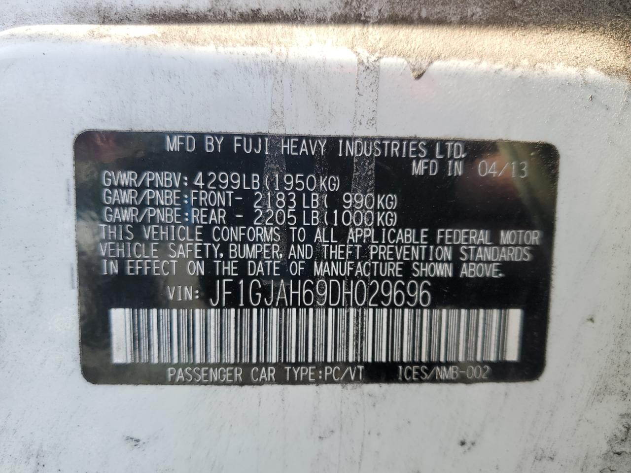 SUBARU IMPREZA 2.0 2013 р.в., Повний привід (JF1GJAH69DH029696) з США