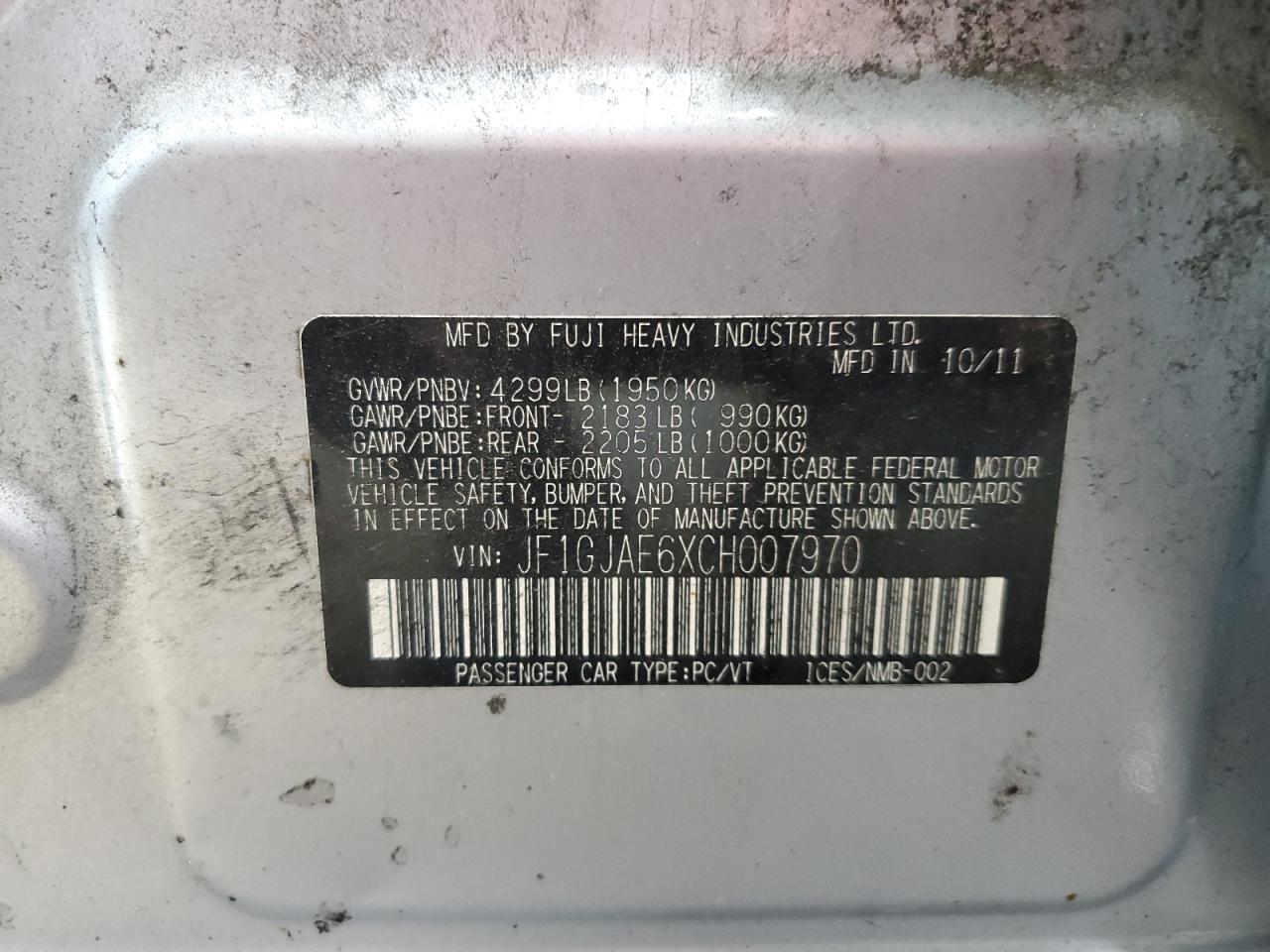 Колір СрібнийЦиліндри 4Привід Повний привідVIN JF1GJAE6XCH007970Стан НевідомоУшкодження З боків