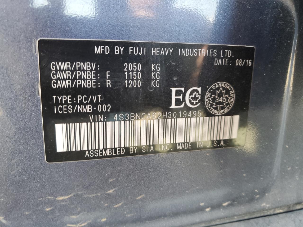 SUBARU LEGACY 2.5 2017 р.в., Повний привід (4S3BNCA62H3019495) з США