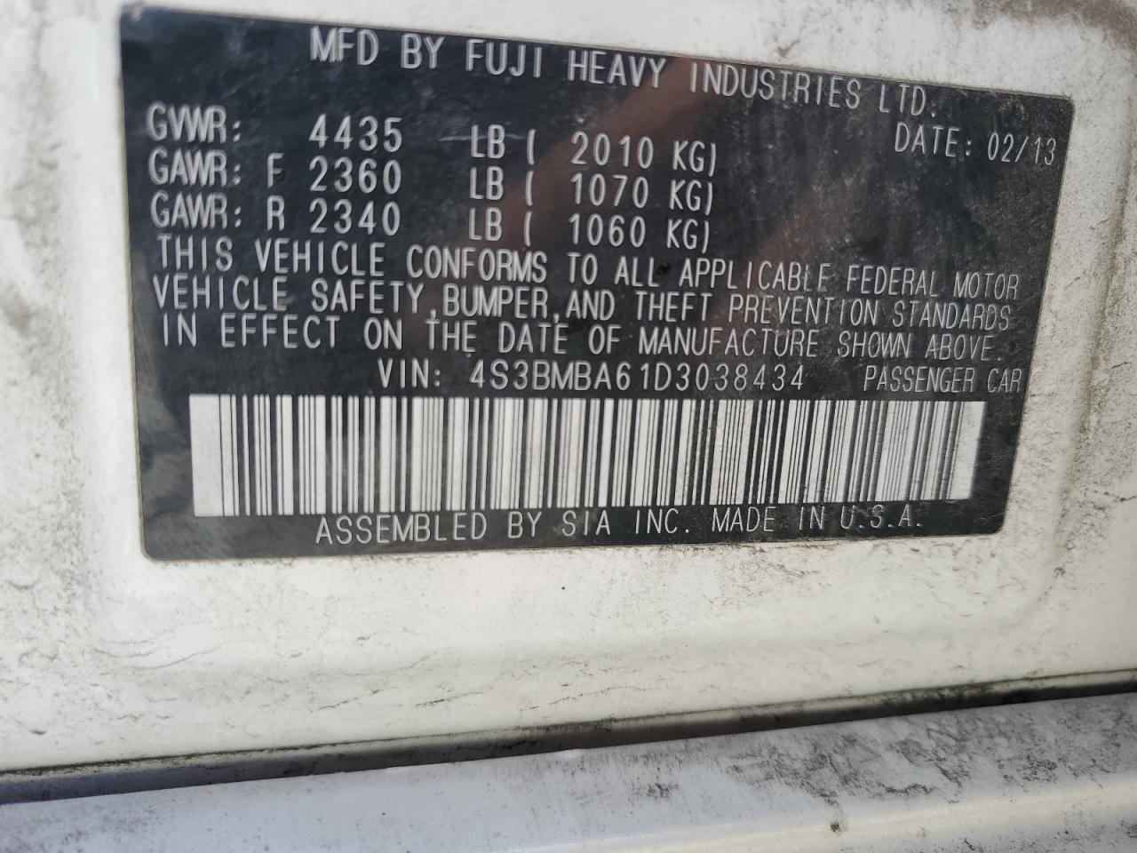 Колір БілийЦиліндри 4Привід Повний привідVIN 4S3BMBA61D3038434Стан НевідомоУшкодження Передня або задня