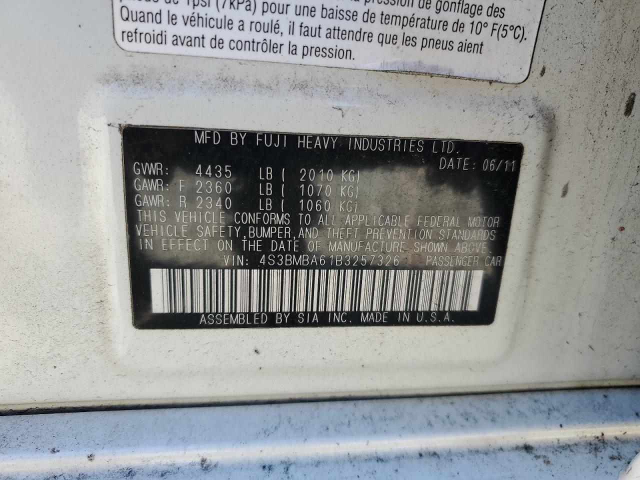 SUBARU LEGACY 2.5 2011 р.в., Повний привід (4S3BMBA61B3257326) з США