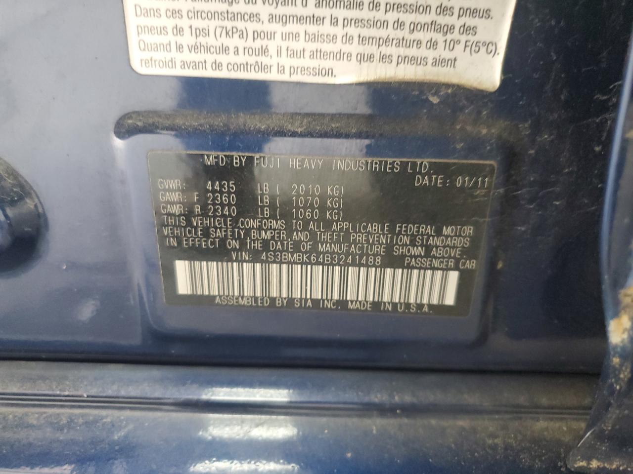 2011 SUBARU LEGACY 2.5I LIMITED