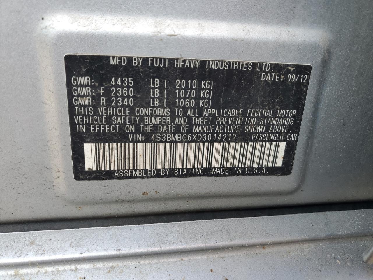 2013 SUBARU LEGACY 3.6R LIMITED