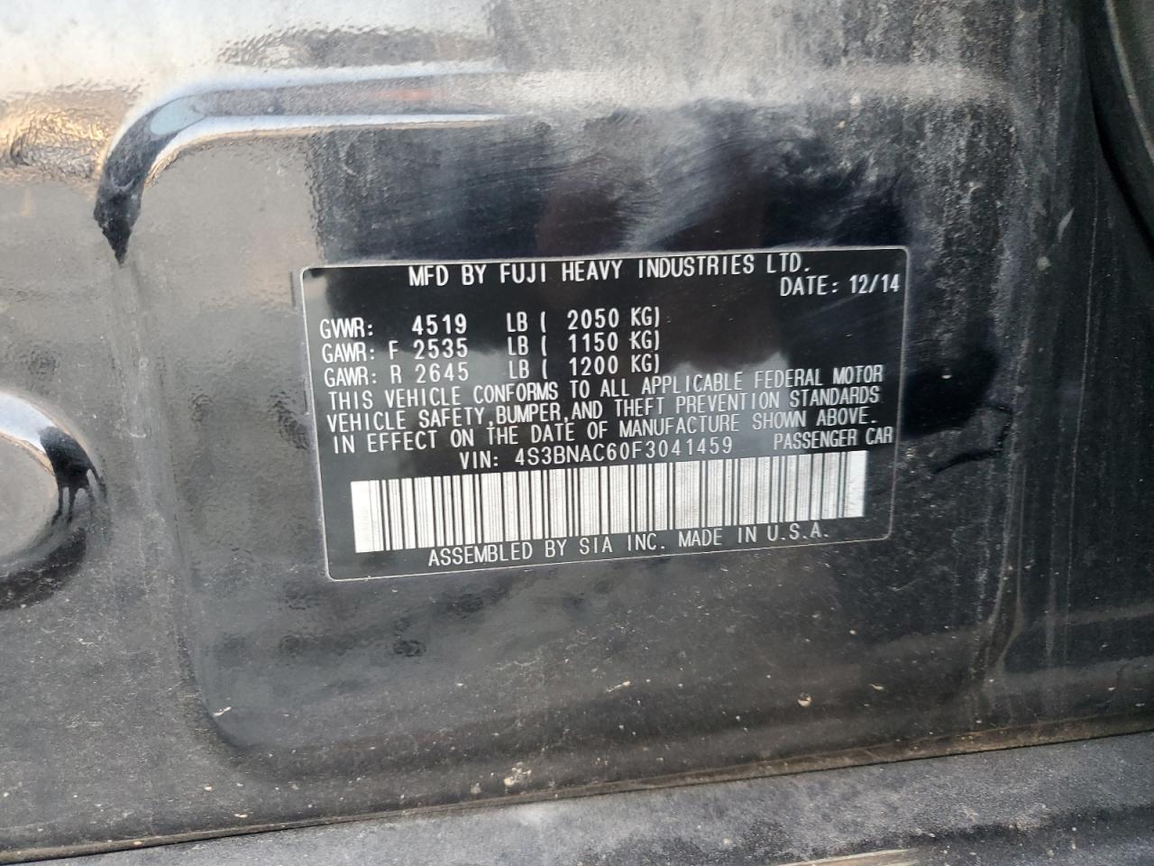 SUBARU LEGACY 2.5 2015 р.в., Повний привід (4S3BNAC60F3041459) з США