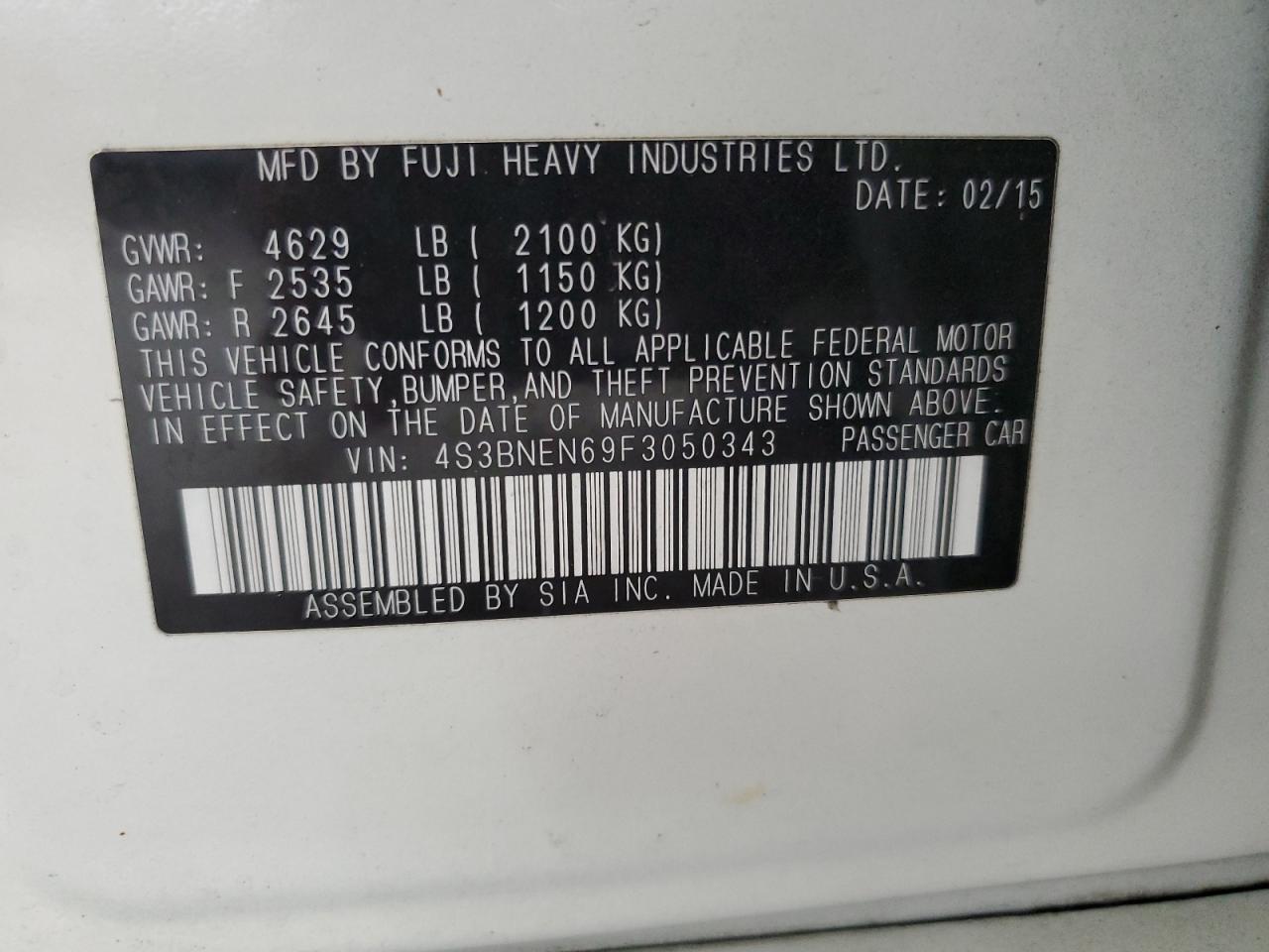 SUBARU LEGACY 3.6 2015 р.в., Повний привід (4S3BNEN69F3050343) з США