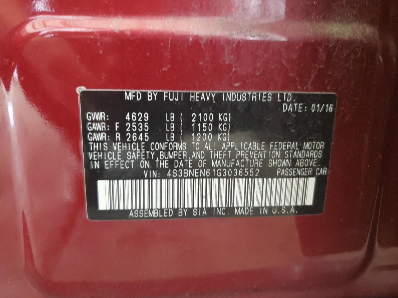 SUBARU LEGACY 3.6 2016 р.в., Повний привід (4S3BNEN61G3036552) з США
