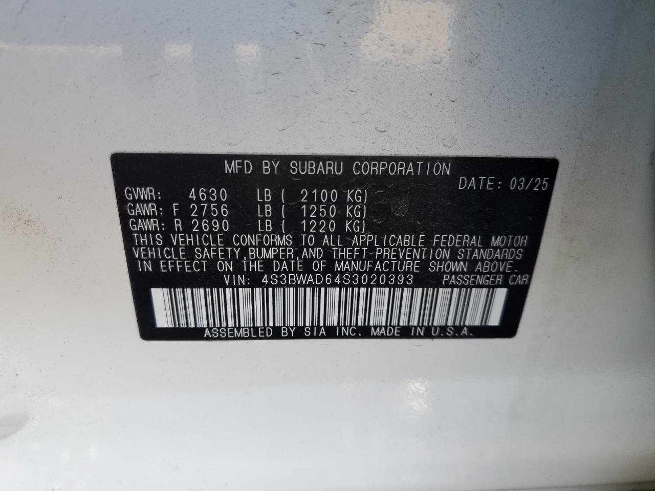 SUBARU LEGACY 2.5 2025 р.в., Повний привід (4S3BWAD64S3020393) з США