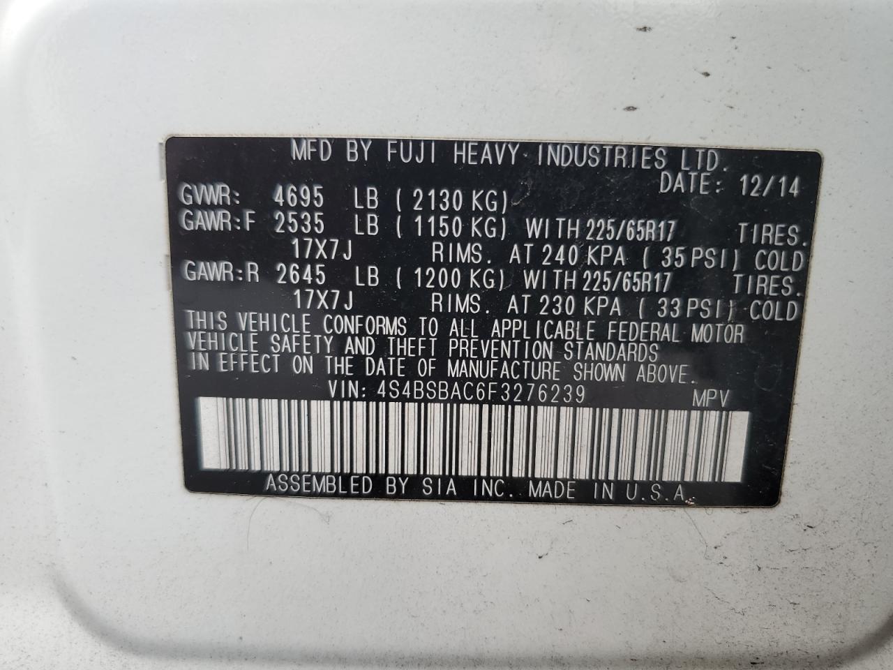 2015 SUBARU OUTBACK 3.6R LIMITED