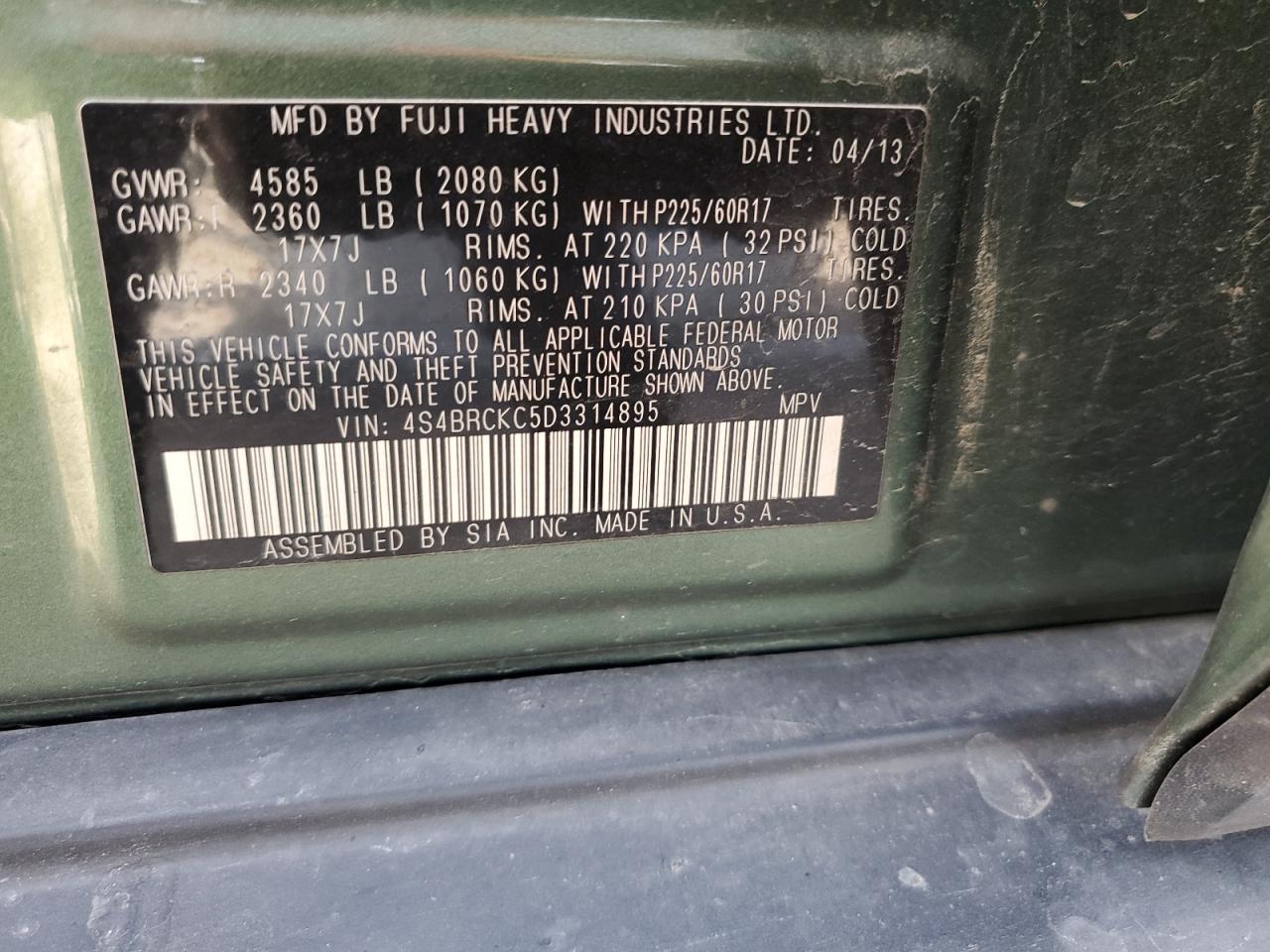Колір ЗеленийЦиліндри 4Привід Повний привідVIN 4S4BRCKC5D3314895Стан Заводиться та їде (перевірено)Ушкодження ВандалізмДата аукціону 2025-11-04