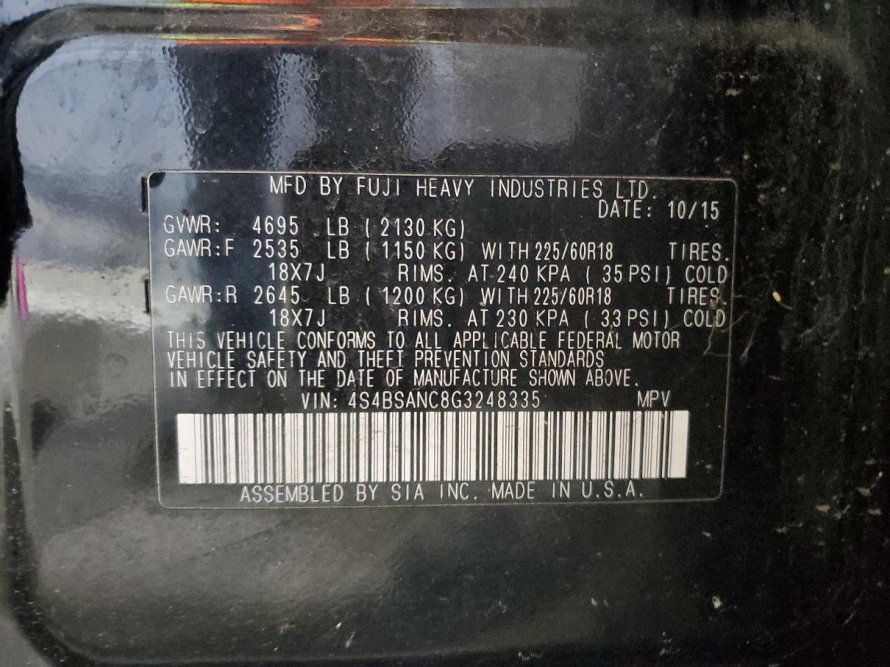 SUBARU OUTBACK 2.5 2016 р.в., Повний привід (4S4BSANC8G3248335) з США
