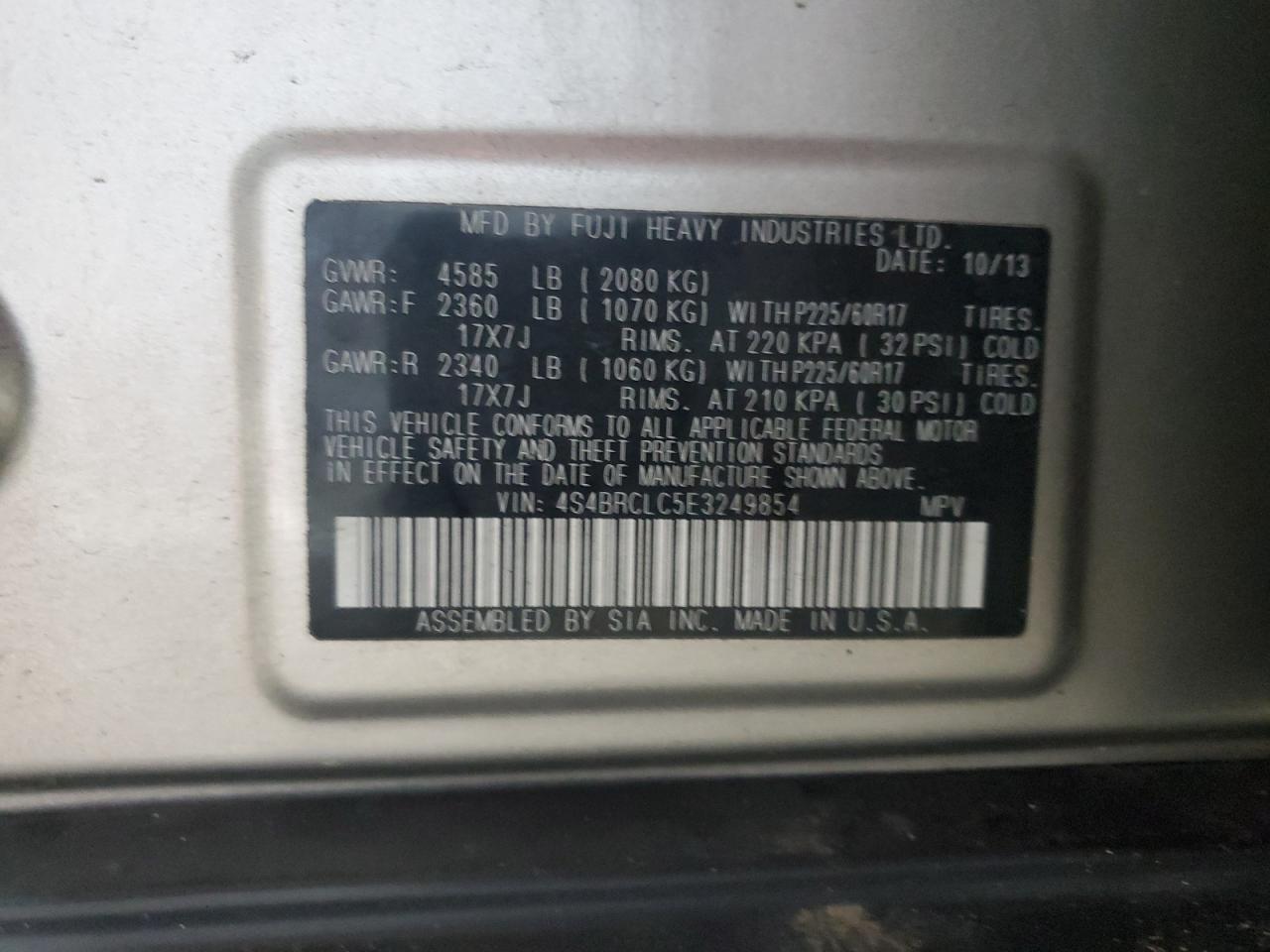 Колір ЗагарЦиліндри 4Привід Повний привідVIN 4S4BRCLC5E3249854Стан Заводиться та їде (перевірено)Ушкодження Звичайний зносДата аукціону 2025-11-04
