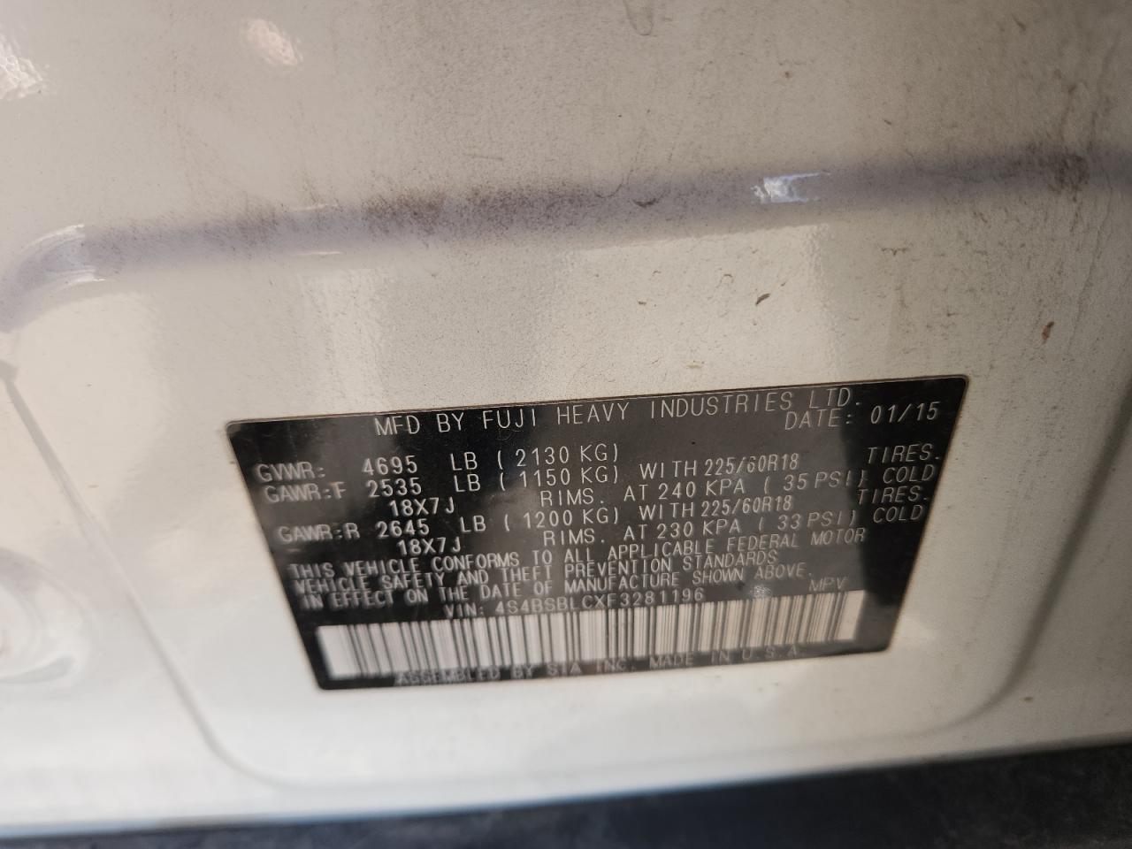 2015 SUBARU OUTBACK 3.6R LIMITED