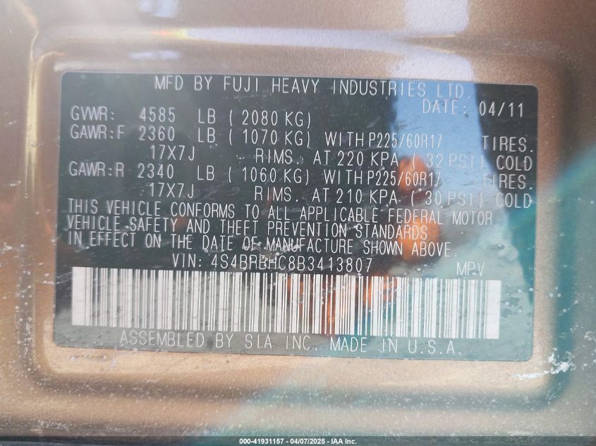 2011 SUBARU OUTBACK 2.5I LIMITED