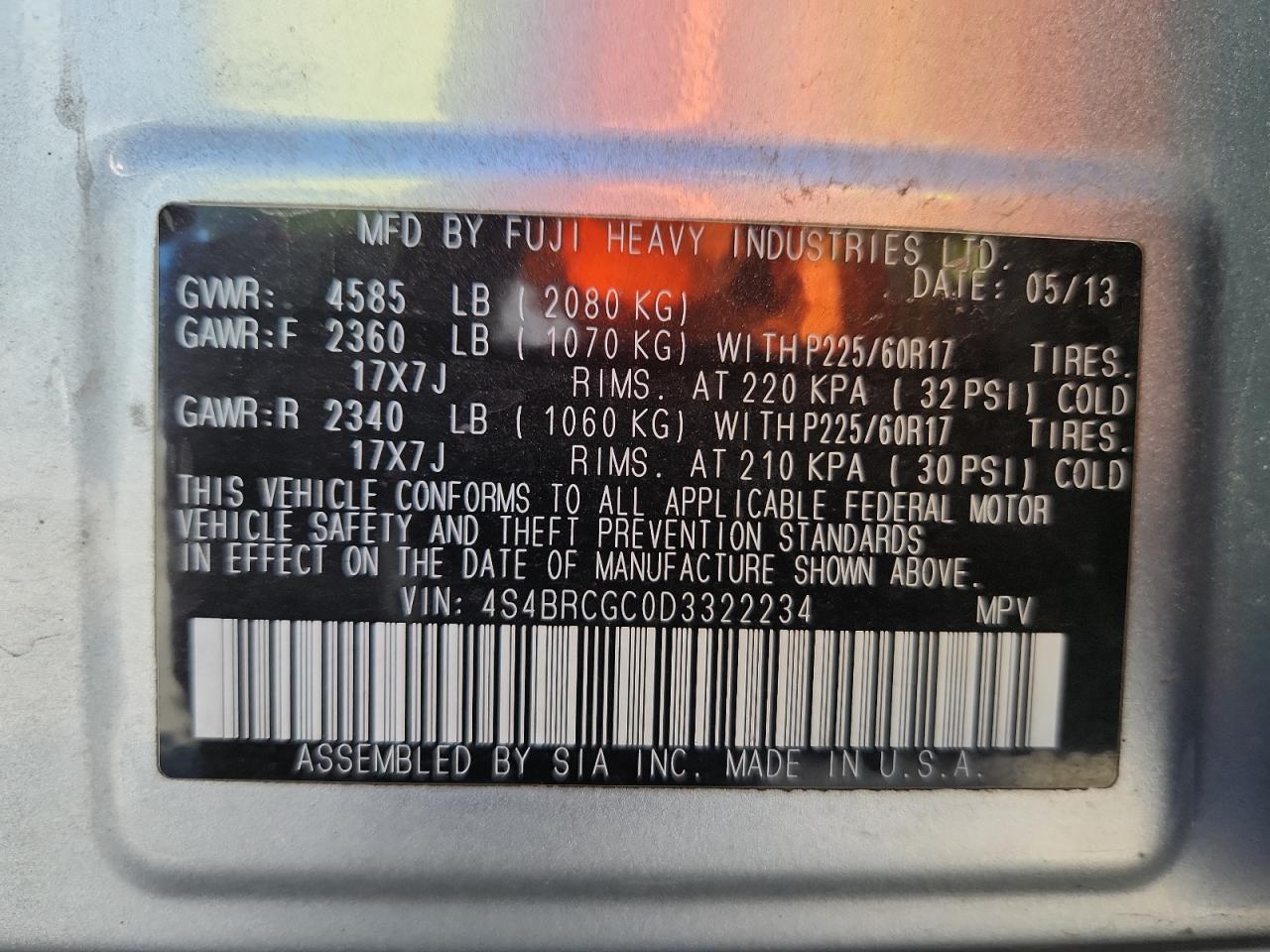 Колір СрібнийЦиліндри 4Привід Повний привідVIN 4S4BRCGC0D3322234Стан Заводиться та їде (перевірено)Ушкодження Передня або задняДата аукціону 2025-11-03