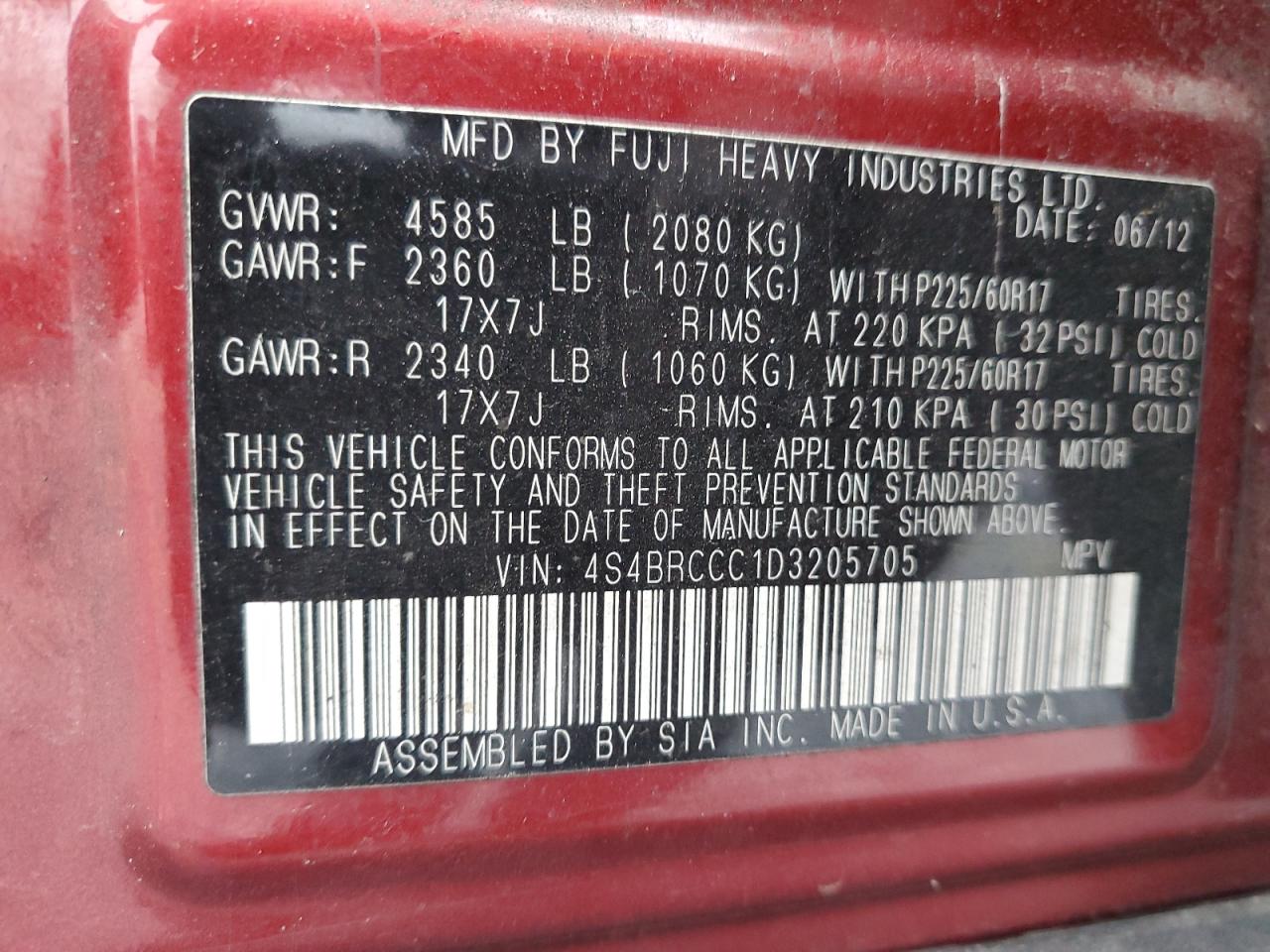 Колір БургундіяЦиліндри 4Привід Повний привідVIN 4S4BRCCC1D3205705Стан НевідомоУшкодження Передня або задня