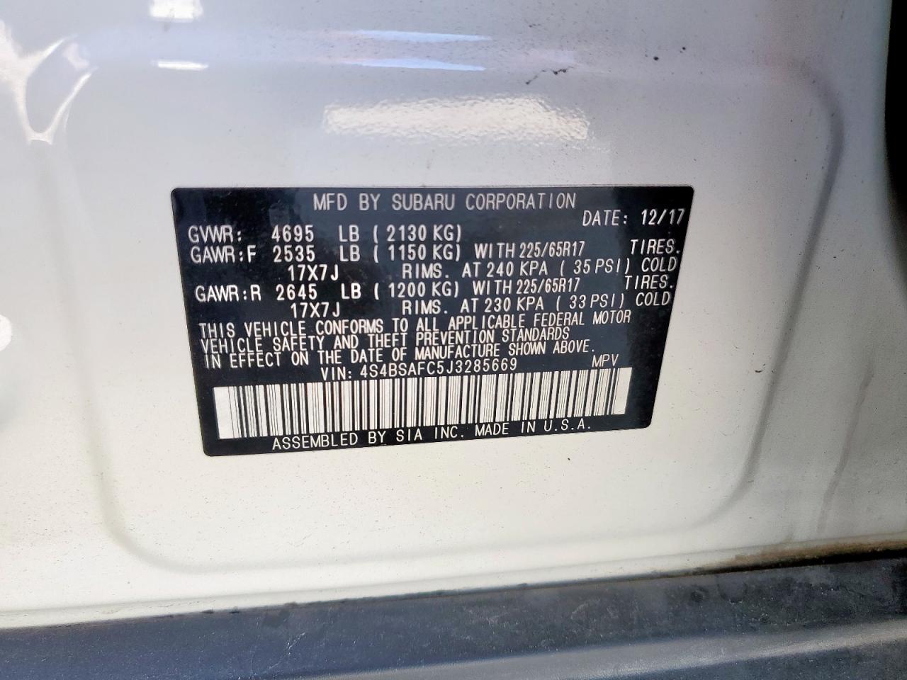Колір БілийЦиліндри 4Привід Повний привідVIN 4S4BSAFC5J3285669Стан Заводиться та їде (перевірено)Ушкодження З боків